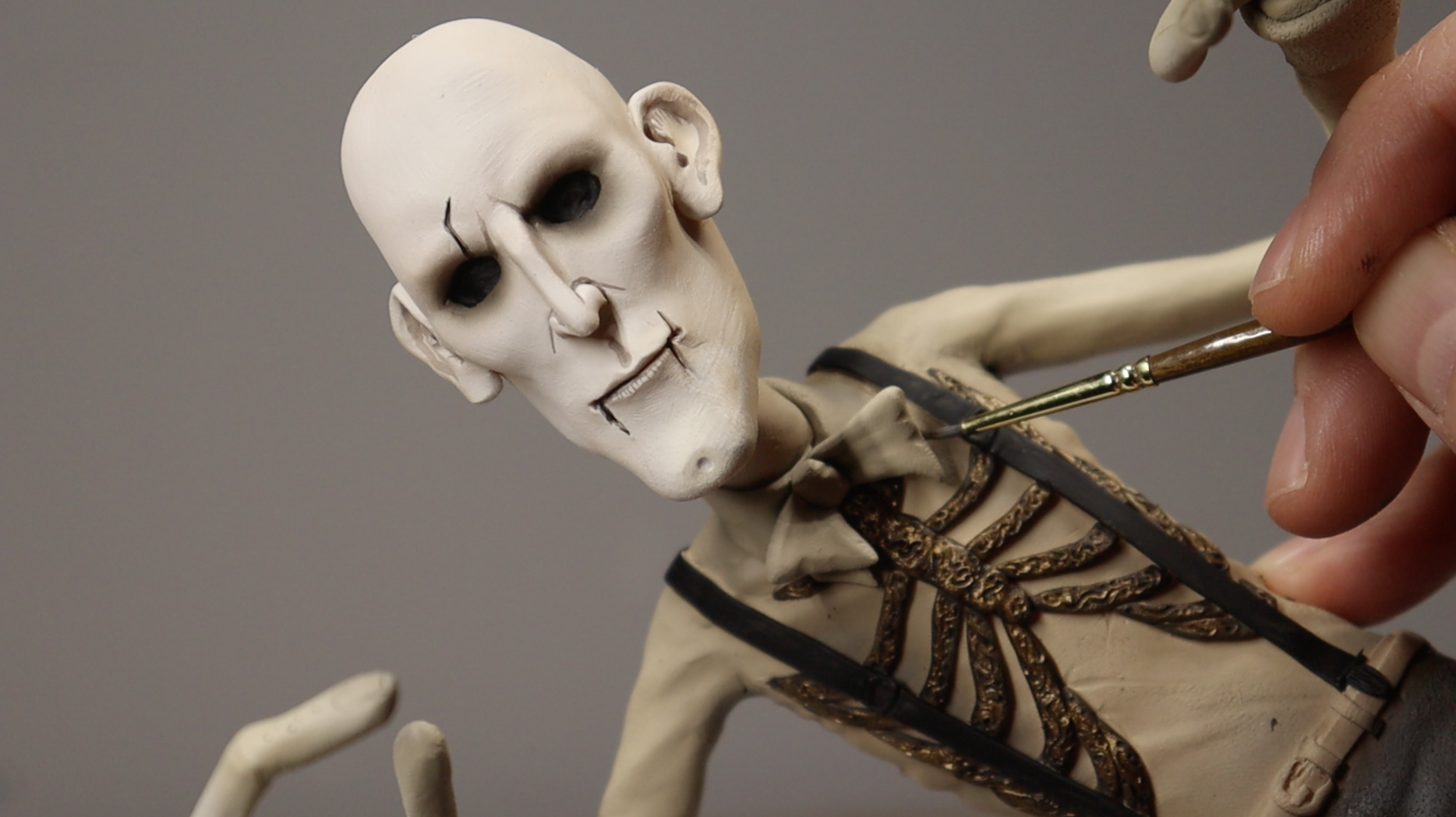 There are many different ways to paint a polymer clay sculpture. Some artists prefer airbrushing for smooth gradients and shading. Others hand paint with small brushes to add precise details. You can also use sponges for texture, dry brushing for highlights, or even finger painting for certain effects. The method you use simply depends on the look you want and the type of sculpture you are creating. Check out my full tutorial on sculpture painting here.